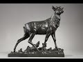 带有棕色铜绿的青铜雕塑在其换羽后出现了一只鹿。它位于一个露台上,形成一个基地,里面充满了树木的菌株,并点缀着橡木叶和龟头。该动物的外套是现实制作的,其脸非常富有表现力。该动物铜牌在左下方的“Ch。Paillet”下方签名。大约:1910