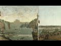 第一个全景面板代表尼亚加拉瀑布。场景以壮观的瀑布开头,充满了光线。凝视既拥抱着悬崖的宏伟壮丽,又融入了森林的冠冕,瀑布的巨大力量将自己扔进了河中。出色的绘画平衡的构图突出了该地点的威严,并用虹彩灯光的天空(典型的Zuber手绘制的景观)强调了。右边的前景使19世纪服装的人物场景动画,一个美国家庭协助该节目,而在左边,一条蜿蜒的道路沿着坚固的银行延伸,增加了叙事深度。美国的开创性维度通过蒸汽船和几艘帆船在中心强调,这证明了技术进步和大陆开放的发展。